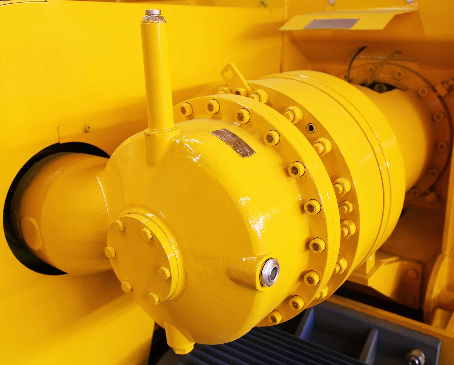 轴端采用电动浓油泵注油润滑、减速箱采用浸油润滑、轴承采用油枪注油润滑。电动浓油泵输出四个高压油脂出油口,向各润滑点同时供油,每个出油口对应一个超压指示器。
